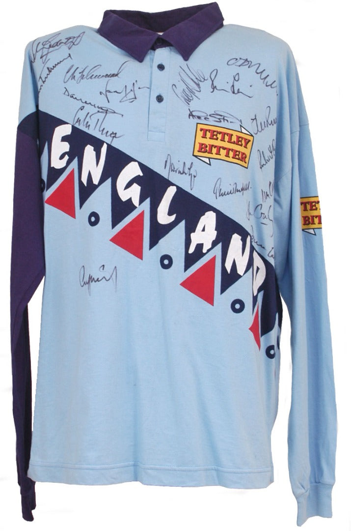 A superb piece of sporting memorabilia, this England ODI cricket shirt was worn by Alan Mullally on England's 1996 Tour of Zimbabwe and has been hand-signed by the England Touring party.