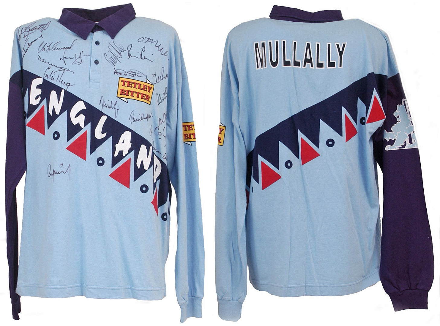 Alan Mullally Match Worn & Squad Signed England Circa 1990's Match Worn Cricket Jersey COA