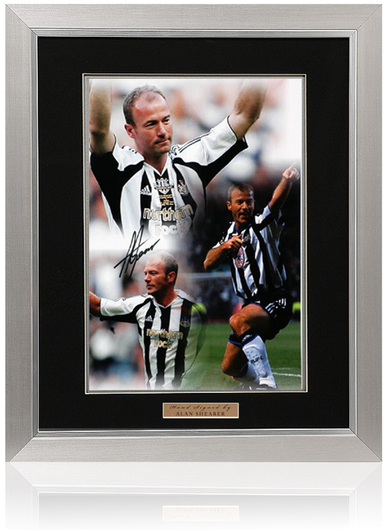 A fantastic 16x12" photographic montage hand-signed by Premier League all-time leading goalscorer and Newcastle United legend, Alan Shearer.