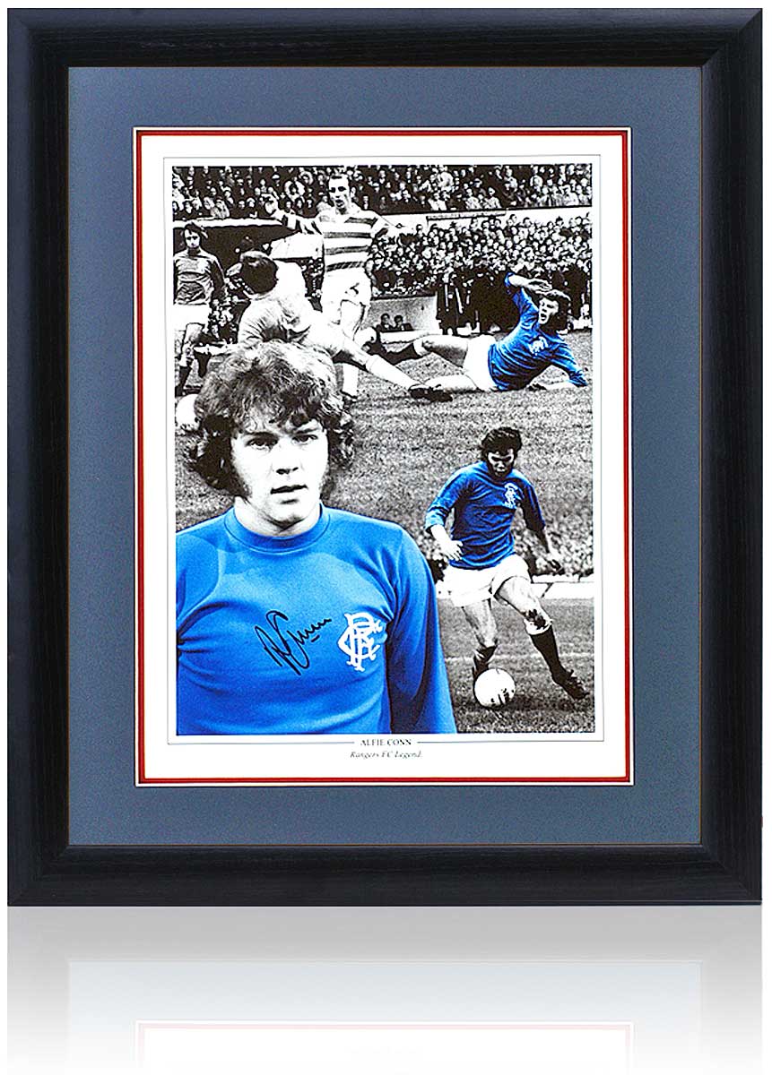 Fantastic 16x12" photographic montage hand signed by Rangers Legend, Alfie Conn