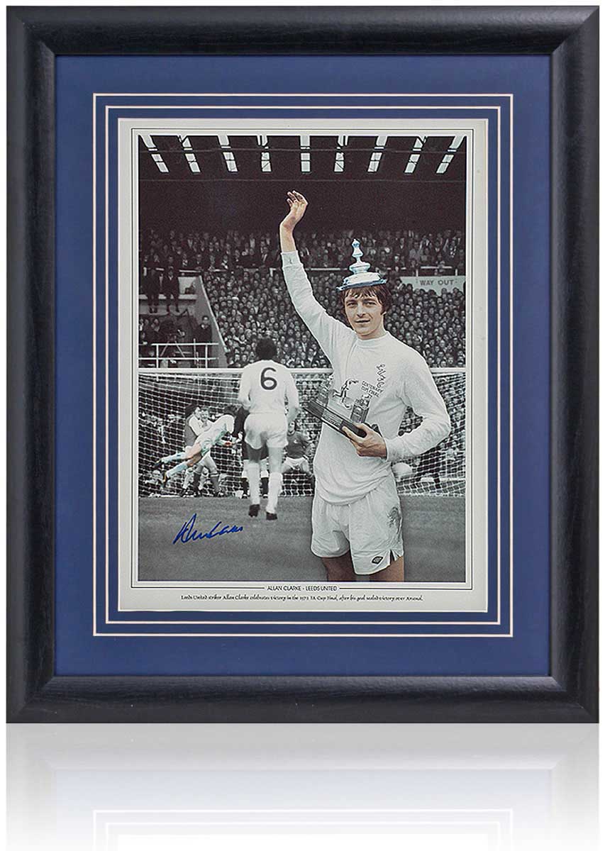 Fantastic 16x12'' photographic montage of Allan Clarke celebrating Leeds' 1972 FA Cup win over Arsenal in which he scored the winning goal, hand signed by the Leeds United and England legendary striker.