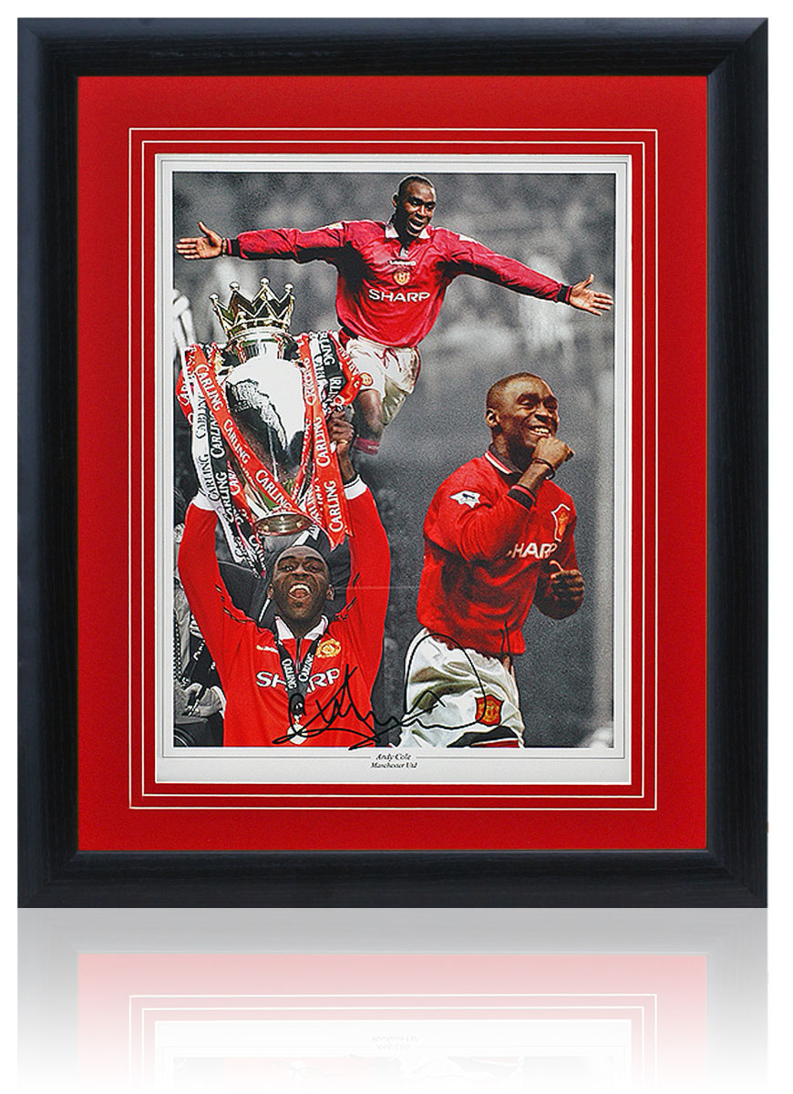 Andy Cole Manchester United Legend Hand Signed 23x19" Framed Montage