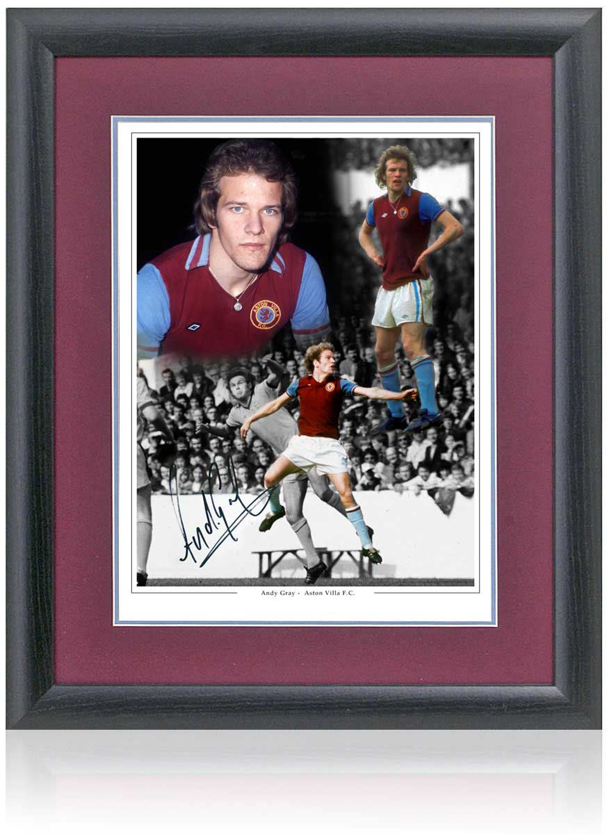 Fantastic 16x12" photographic montage hand signed by legendary Aston Villa 1977 League Cup winner, Andy Gray.