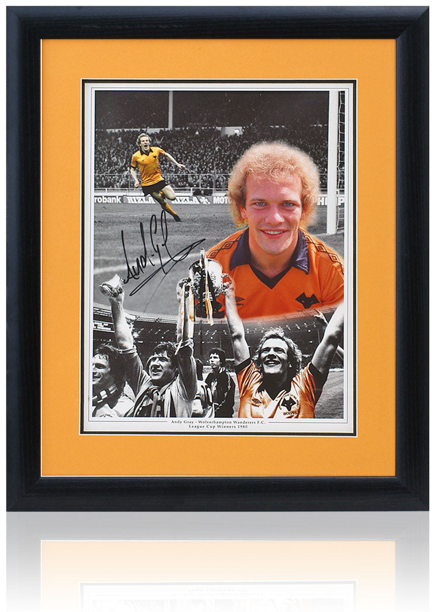 Fantastic 16x12" montage hand signed by Wolverhampton Wanderers 1980 League Cup winning legend, Andy Gray.