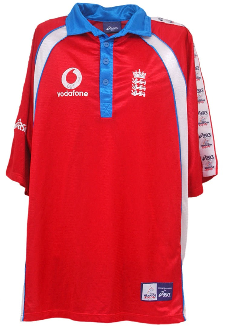 A rare piece of cricket memorabilia, this Asics England cricket training polo shirt was worn by Angus Fraser during the England 1999 ICC Cricket World Cup.