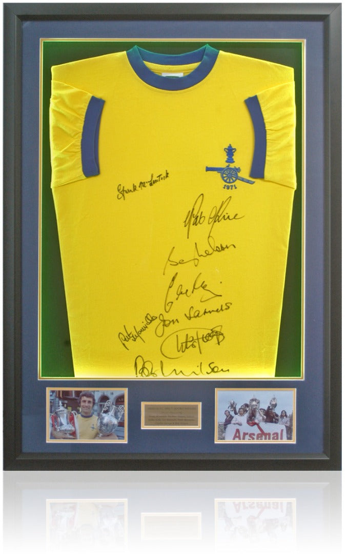 Hand Signed by: Frank Mclintock, Pat Rice, Sammy Nelson, Eddie Kelly, Jon Sammels, Peter Marinello, Charlie George, and Bob Wilson.