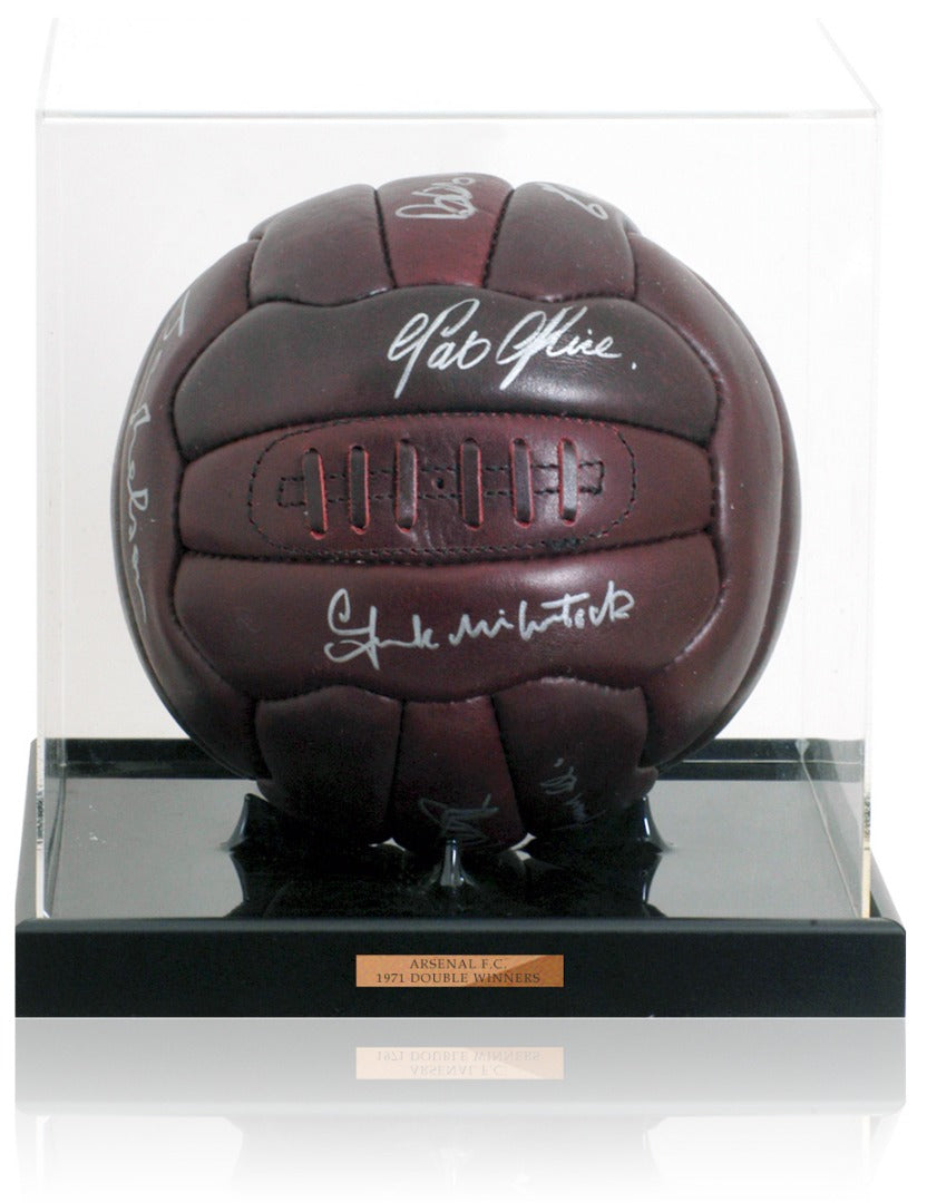 Hand signed by Charlie George, Jon Sammels, Peter Marinello, Frank McLintock, Pat Rice, Bob Wilson, & Sammy Nelson The Ball comes presented in an acrylic display case with brass name plaque.