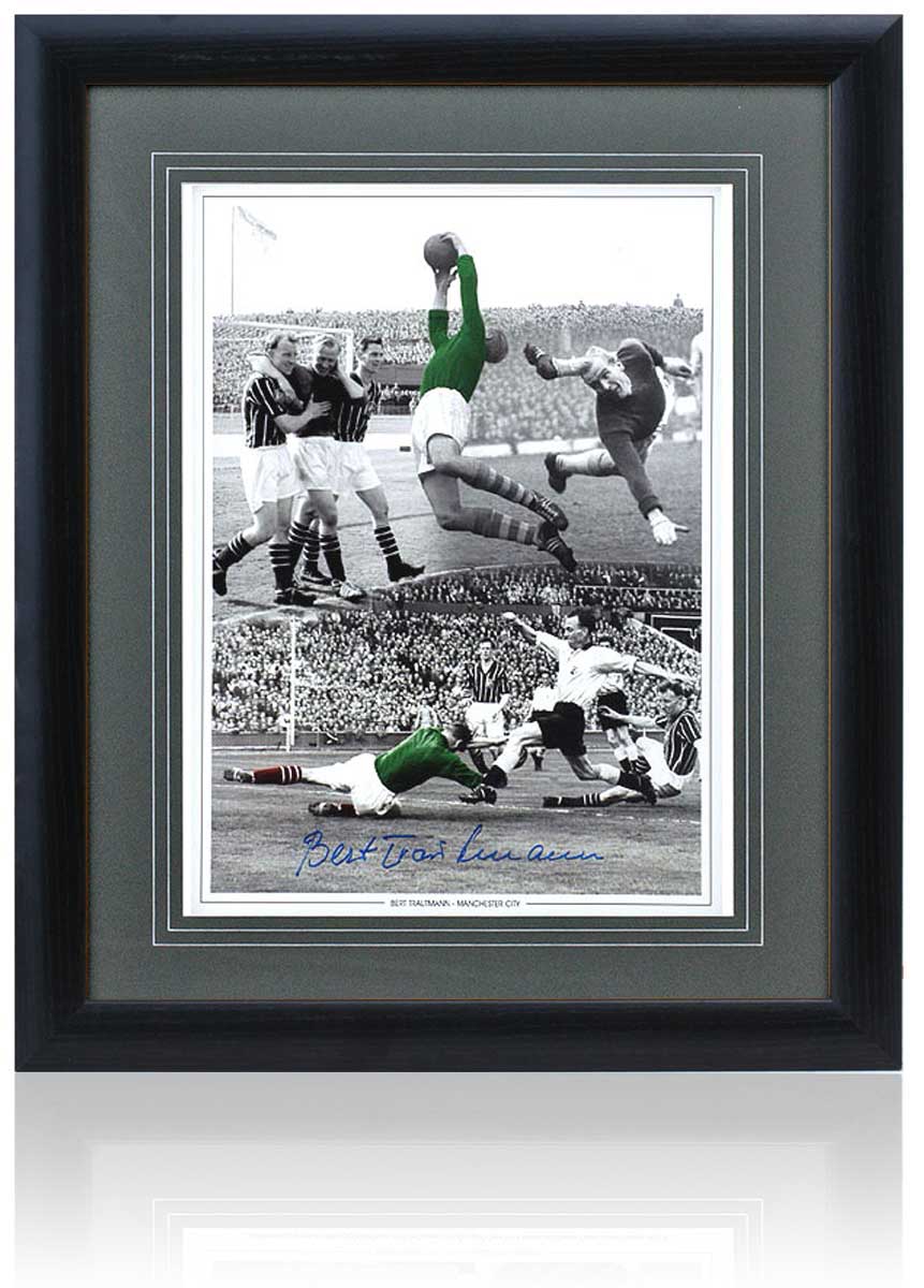Celebrate the legacy of Manchester City legend Bert Trautmann with this fantastic 16x12" photographic montage hand-signed by the legendary goalkeeper, famed for his heroic performances, including playing with a broken neck in the 1956 FA Cup Final.