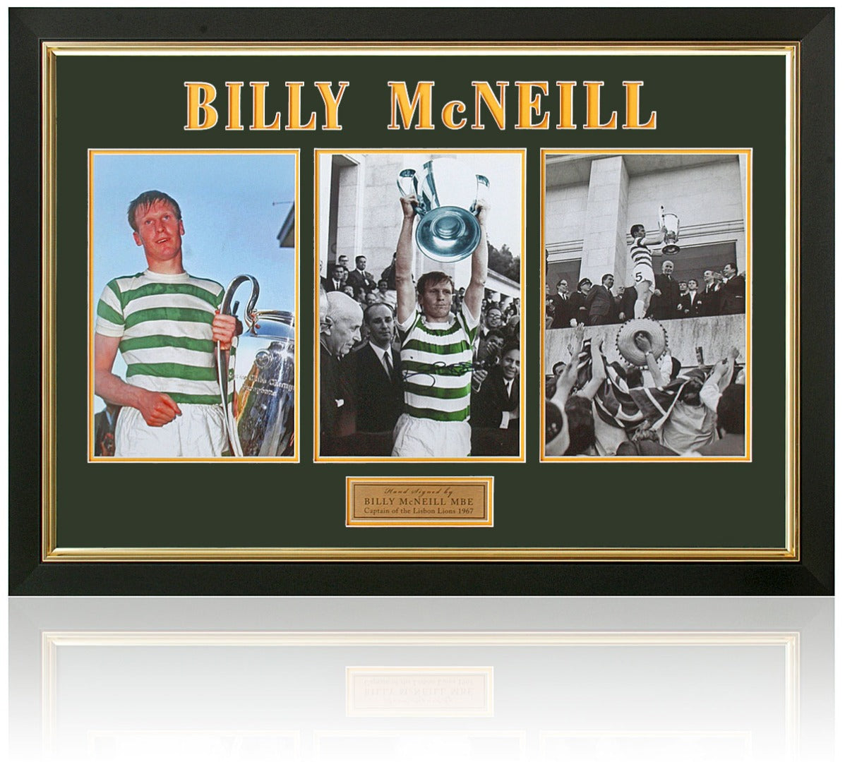 At the heart of this magnificent display is a 12x8" photograph hand-signed by legendary captain Billy McNeill, captured in the iconic moment he proudly lifted the European Cup in Lisbon.
