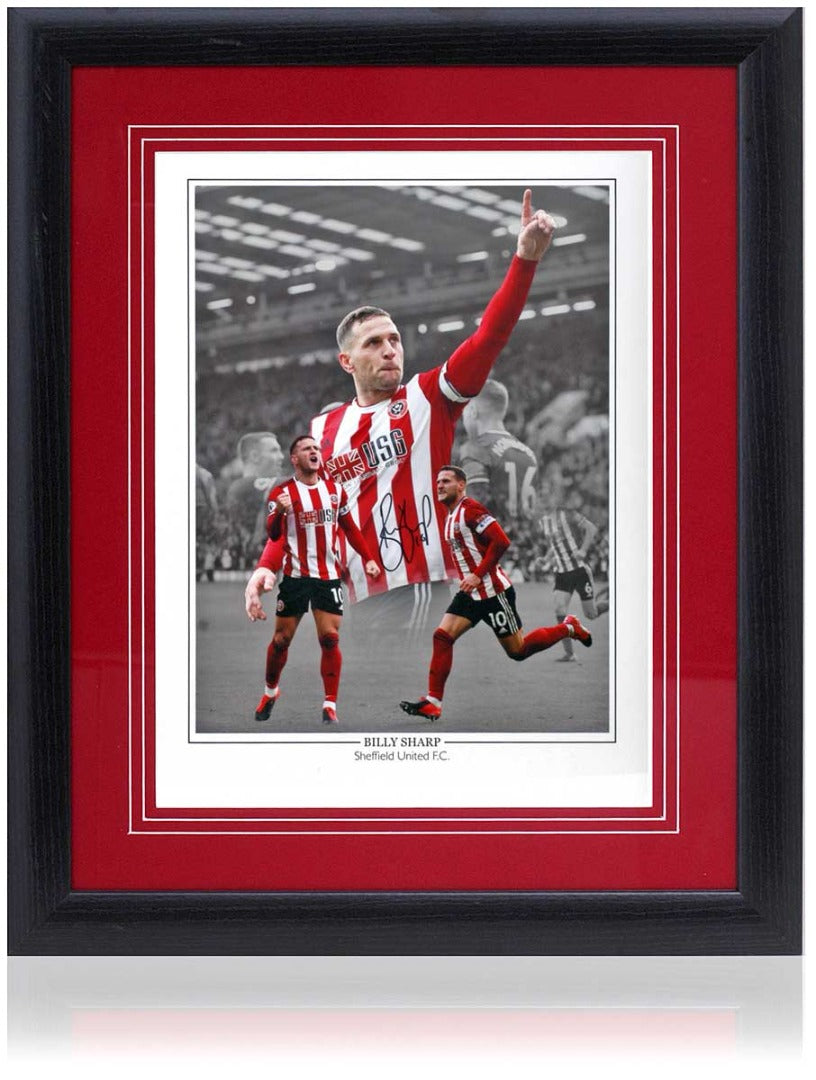 A fantastic 16x12" photographic montage hand-signed by Sheffield United former club captain Billy Sharp, one of the most iconic and prolific goal scorers in the club’s modern history.