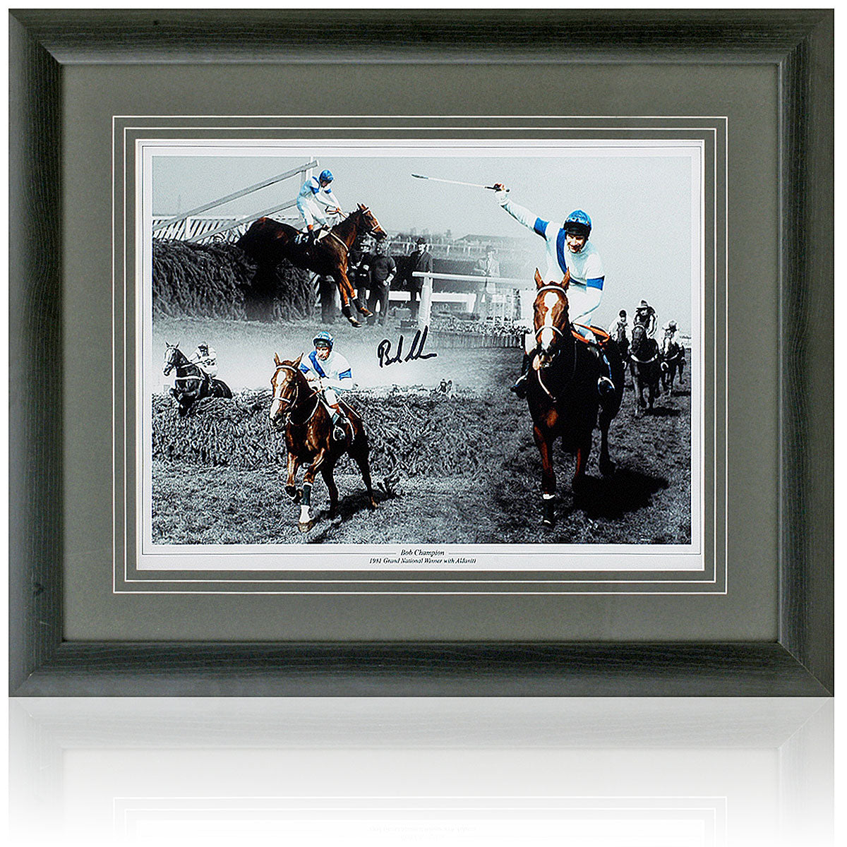 Fantastic 16x12'' hand-signed photographic montage of Bob Champion riding Aldaniti to win the 1981 Grand National.