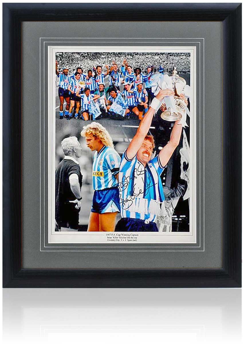 Fantastic 16x12" photo montage hand-signed by Coventry City 1987 FA-cup-winning legend, Brain Kilcline.