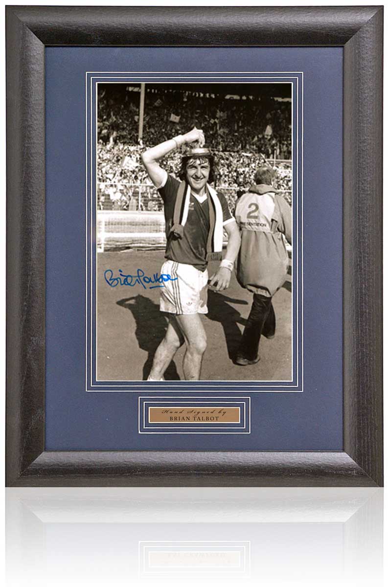 Fantastic 12x8" photograph Brian Talbot after winning the 1978 FA Cup, hand-signed by the Ipswich Town legend.