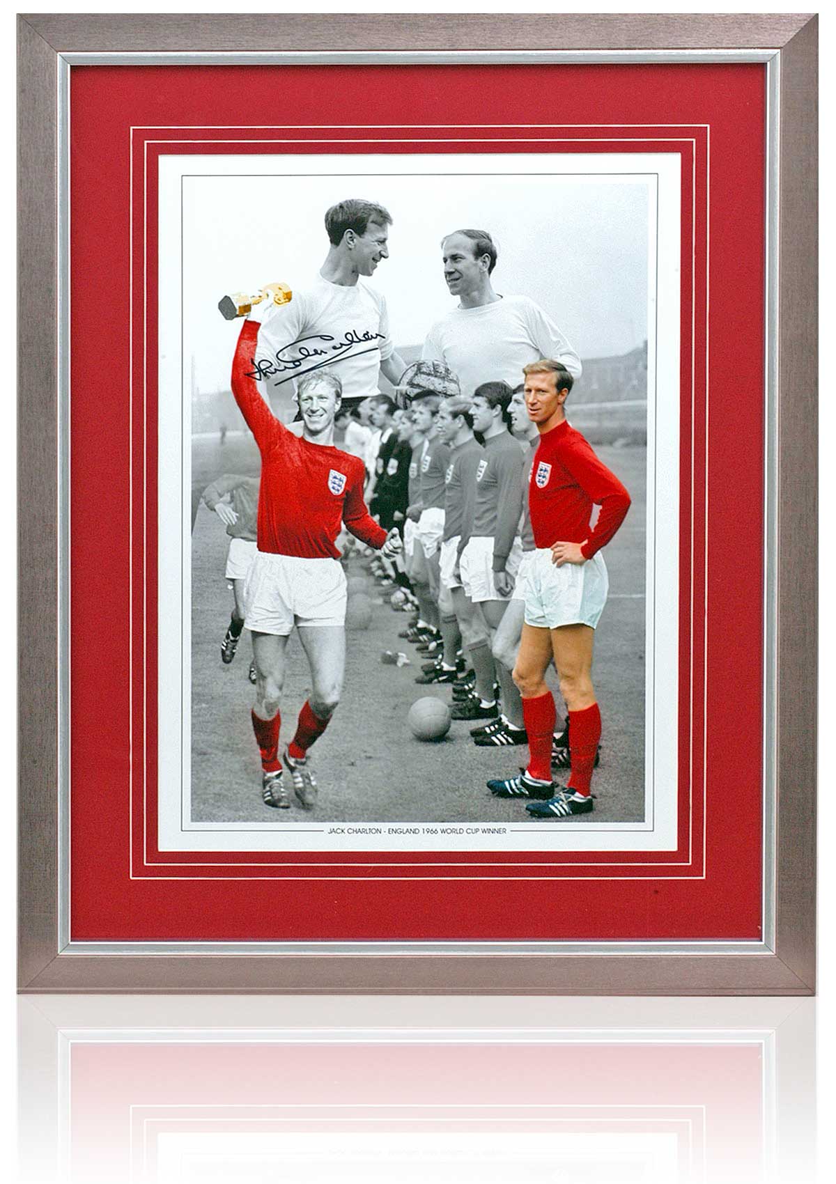 A beautiful montage hand signed by England 1966 World Cup-winning legend, Jack Charlton.
