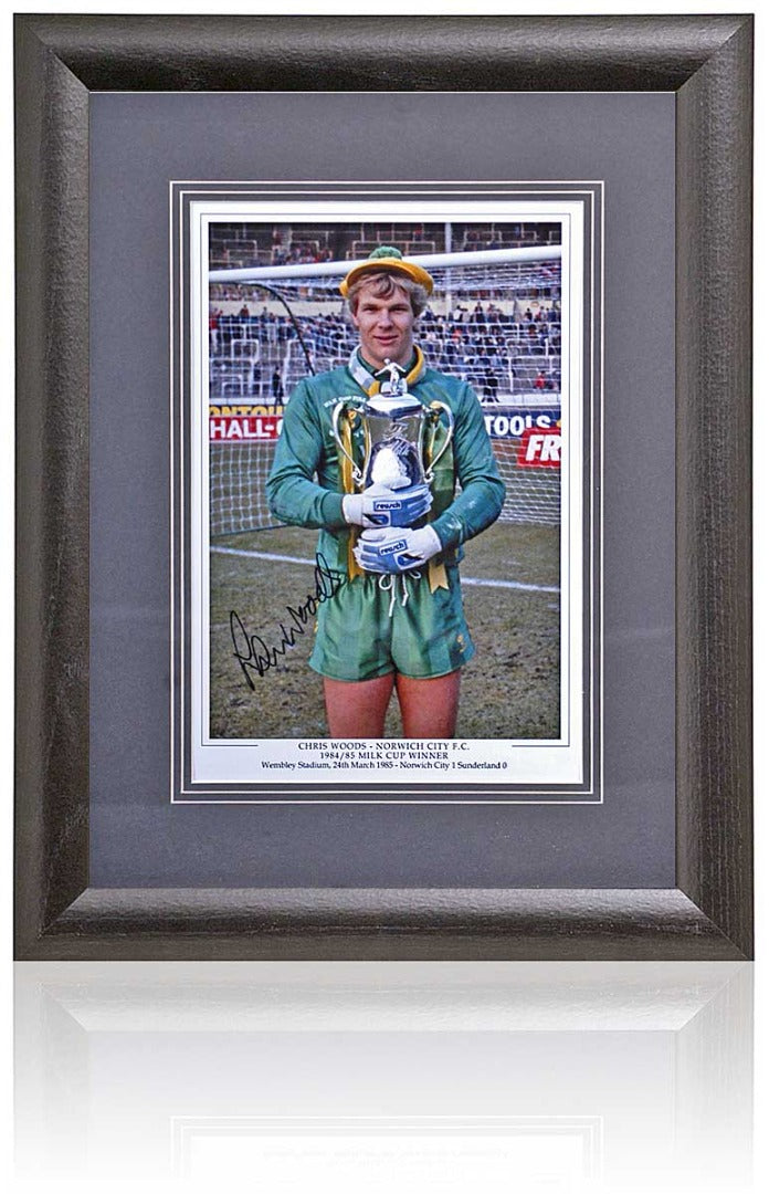 Fantastic 12x8" photograph hand signed by Norwich City Legendary 1985 Milk Cup winning goalkeeper, Chris Woods.