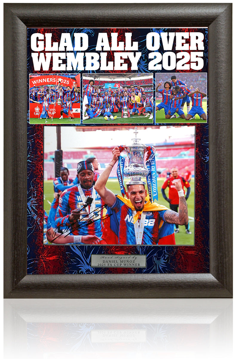 Celebrate a moment of football history with this fantastic photograph hand-signed by Crystal Palace 2025 FA Cup Final winner, Daniel Munoz.