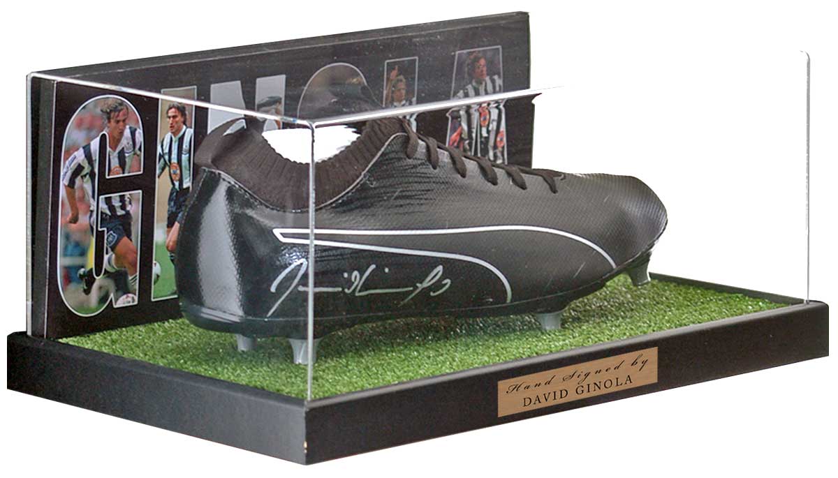 This fantastic piece comes displayed in an acrylic display case on a black wood base with a photomontage of Ginola with a Certificate of Authenticity issued by AFTAL members The British Sports Museum.