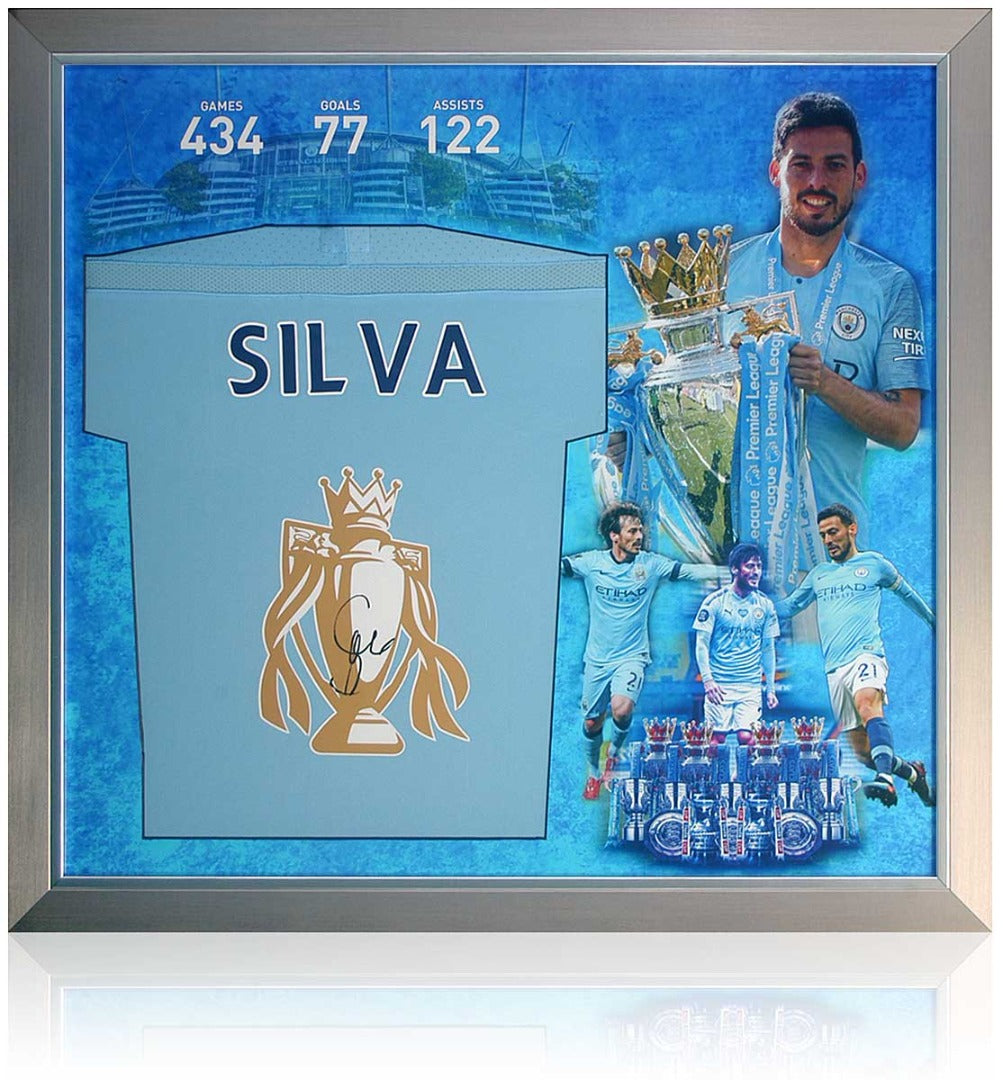 David Silva Manchester City Legend Hand Signed Shirt Presentation