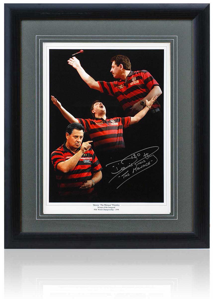 Fantastic 16x12" photographic montage hand signed by the winner of the inaugural PDC World Darts Championship, Dennis Priestley.