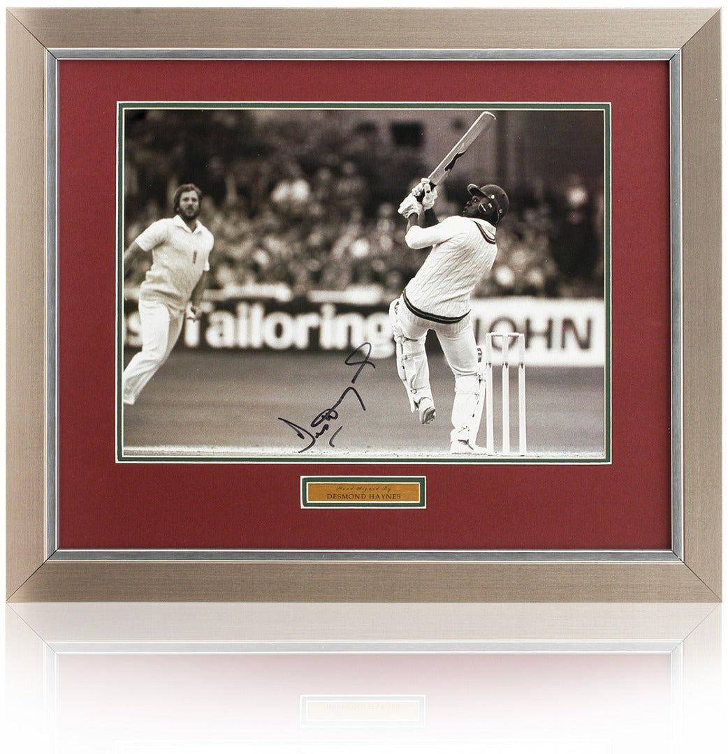 Beautifully presented 16x12" photograph hand-signed by ICC Cricket Hall of Famer, Desmond Haynes.