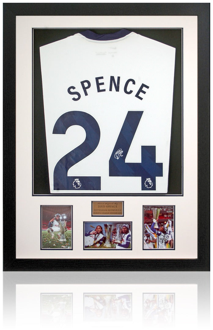 This fantastic piece of sporting memorabilia features a Tottenham Hotspur home shirt, hand signed by the Europa League final winner, Djed Spence.