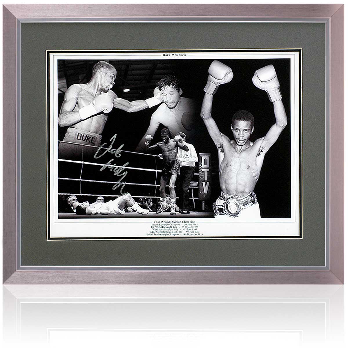 Fantastic 16x12" montage hand signed by British boxing legend, champion of four different weight divisions, Duke McKenzie.