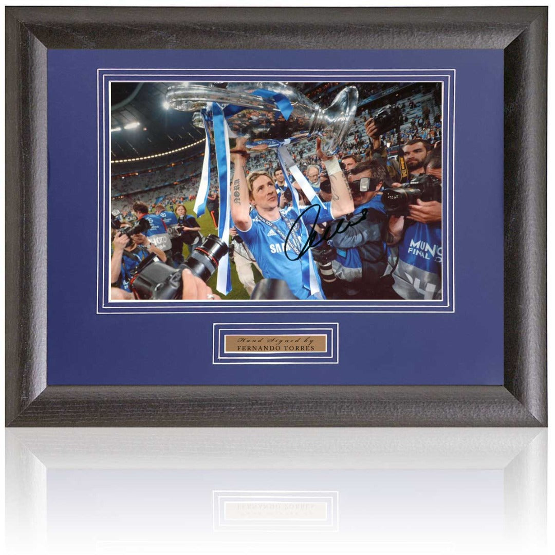 Fernando Torres Chelsea Hand Signed 2012 European Cup Winner Photograph 15x19" Framed