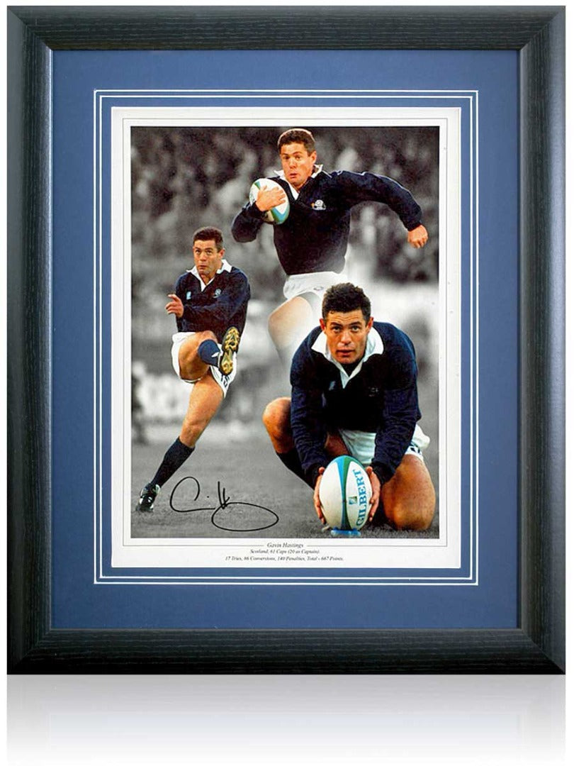 Fantastic 16x12" photographic montage hand signed by former Scotland rugby legend, Gavin Hastings.