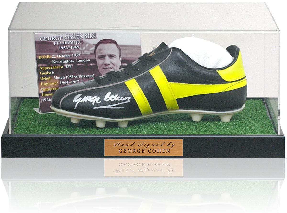 Fantastic football boot hand signed by Fulham one-club legend and England 1966 World Cup-winning hero, George Cohen.