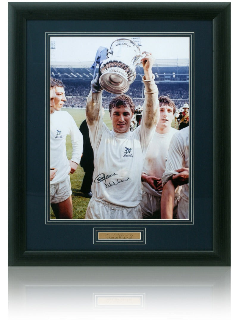 Beautifully presented 16x12” photo of West Bromwich Albion Legend, Graham Williams as he lifts the F.A. Cup after beating Everton 1-0 at Wembley in 1968. This stunning photo has been hand signed by the baggies fullback & is mounted in blue, with a brass plaque, in a black frame.
