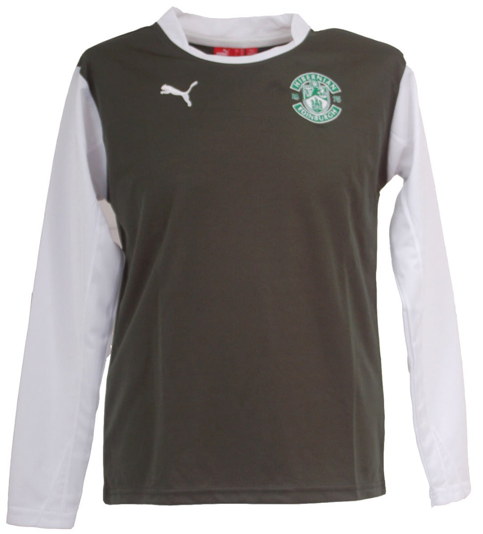 Official Puma Hibernian F.C. long-sleeved home-style kids shirt. Size UK 32/34