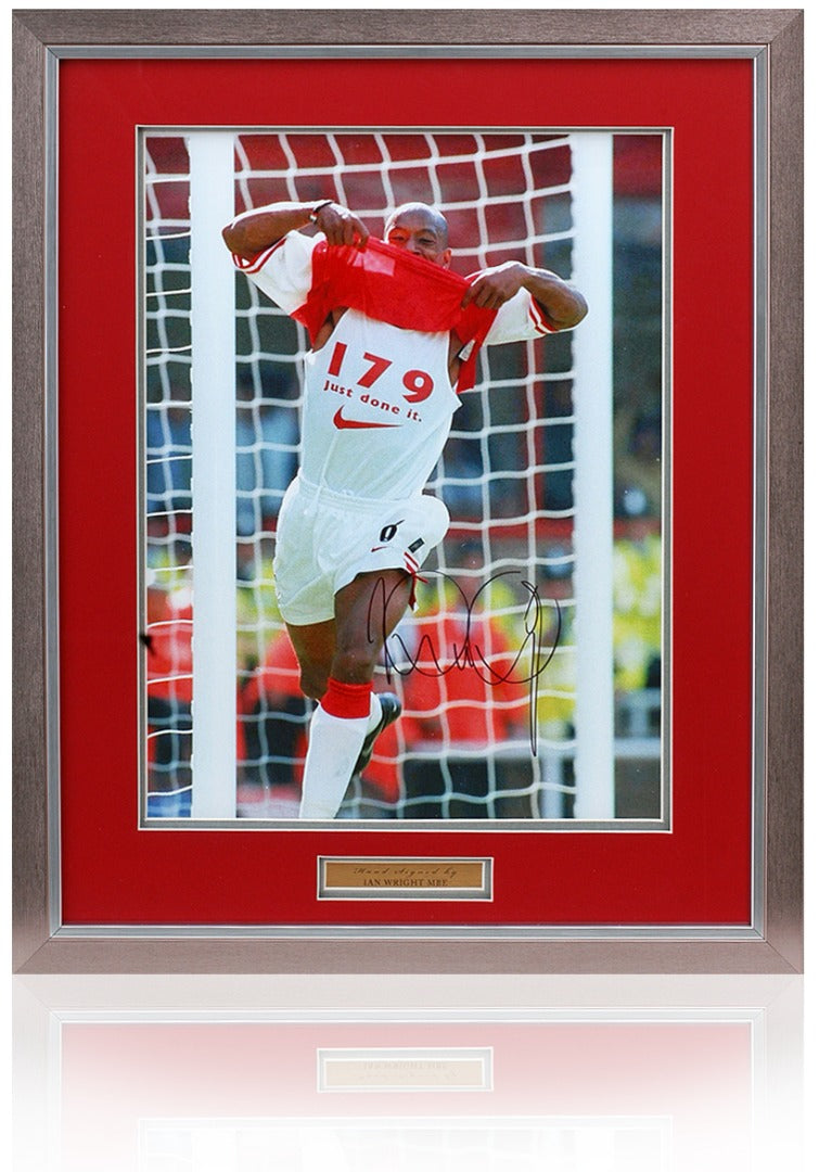 Fantastic 16x12" photograph hand signed by Arsenal legend, Ian Wright, pictured becoming what was at the time Arsenal's all-time leading goal scorer.