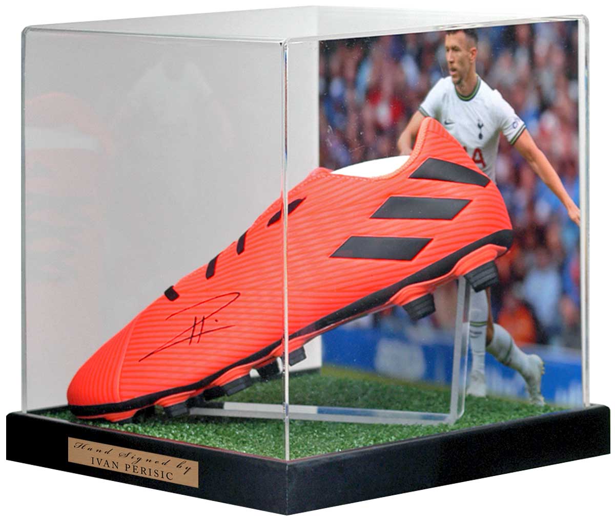 This fantastic piece comes displayed in an acrylic display case on a black wood base with a photograph of Perisic with a Certificate Of Authenticity issued by AFTAL members The BritishSportsMuseum.com