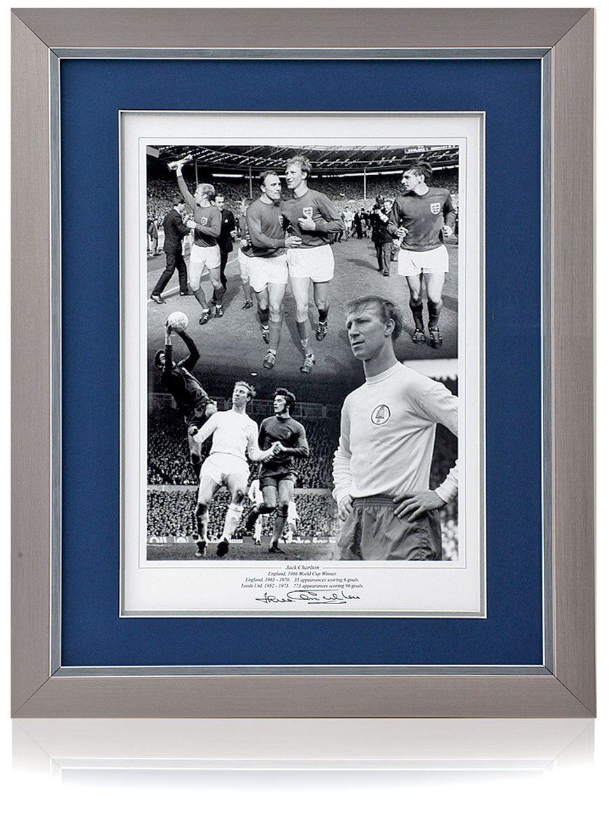 Stunning 16x12inch photographic montage hand-signed by Leeds United & England world cup winning legend, Jack Charlton.