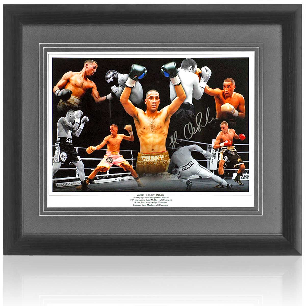 Fantastic 16x12" montage hand signed by British boxing legend and Olympic Gold medalist, James DeGale.