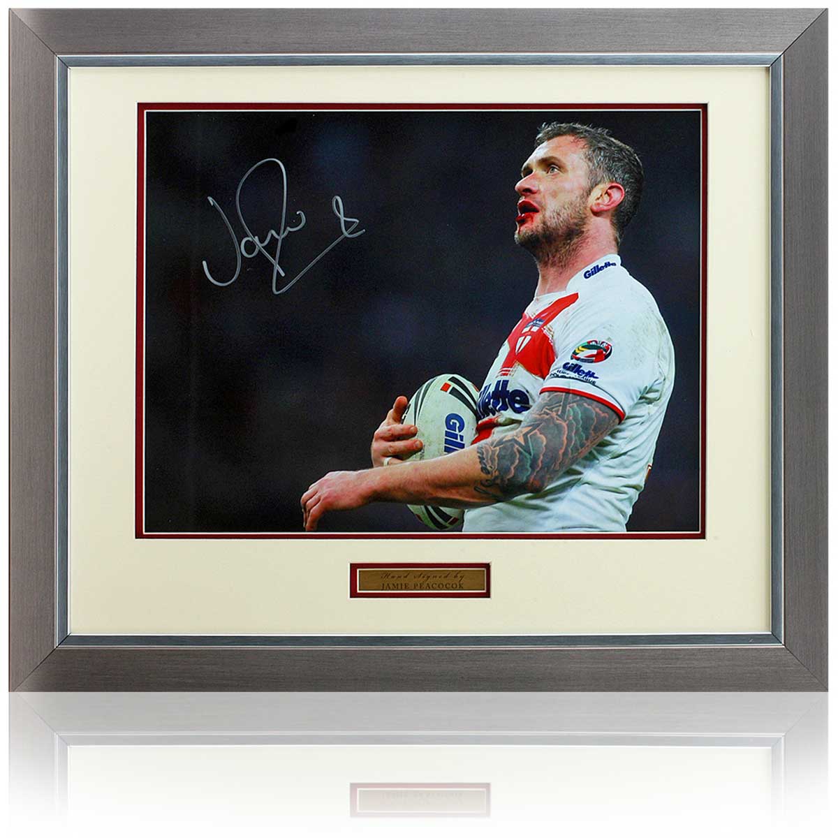 Beautiful 16x12" photograph hand signed by Leeds Rhinos and England Rugby League legend, Jamie Peacock.