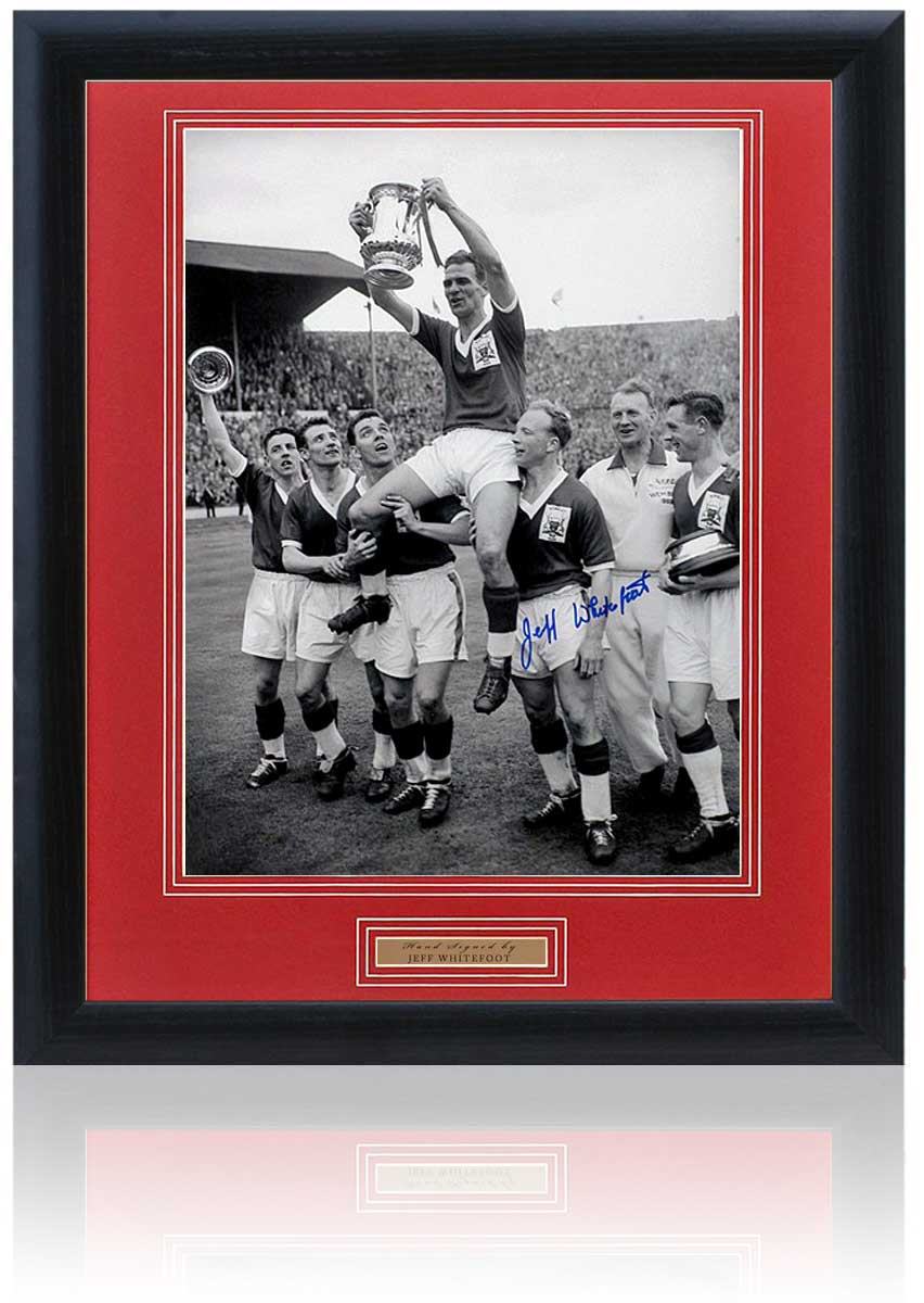 This great piece comes single mounted in gallery double v-grove artboard and framed in a 23x19inch black wood frame. The item comes with a Certificate Of Authenticity issued by BritishSportsMuseum.com with photo proof of Whitefoot signing the picture.