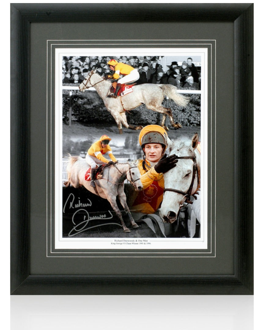 Beautiful 16×12” hand-signed montage of legendary One Man jockey, Richard Dunwoody.