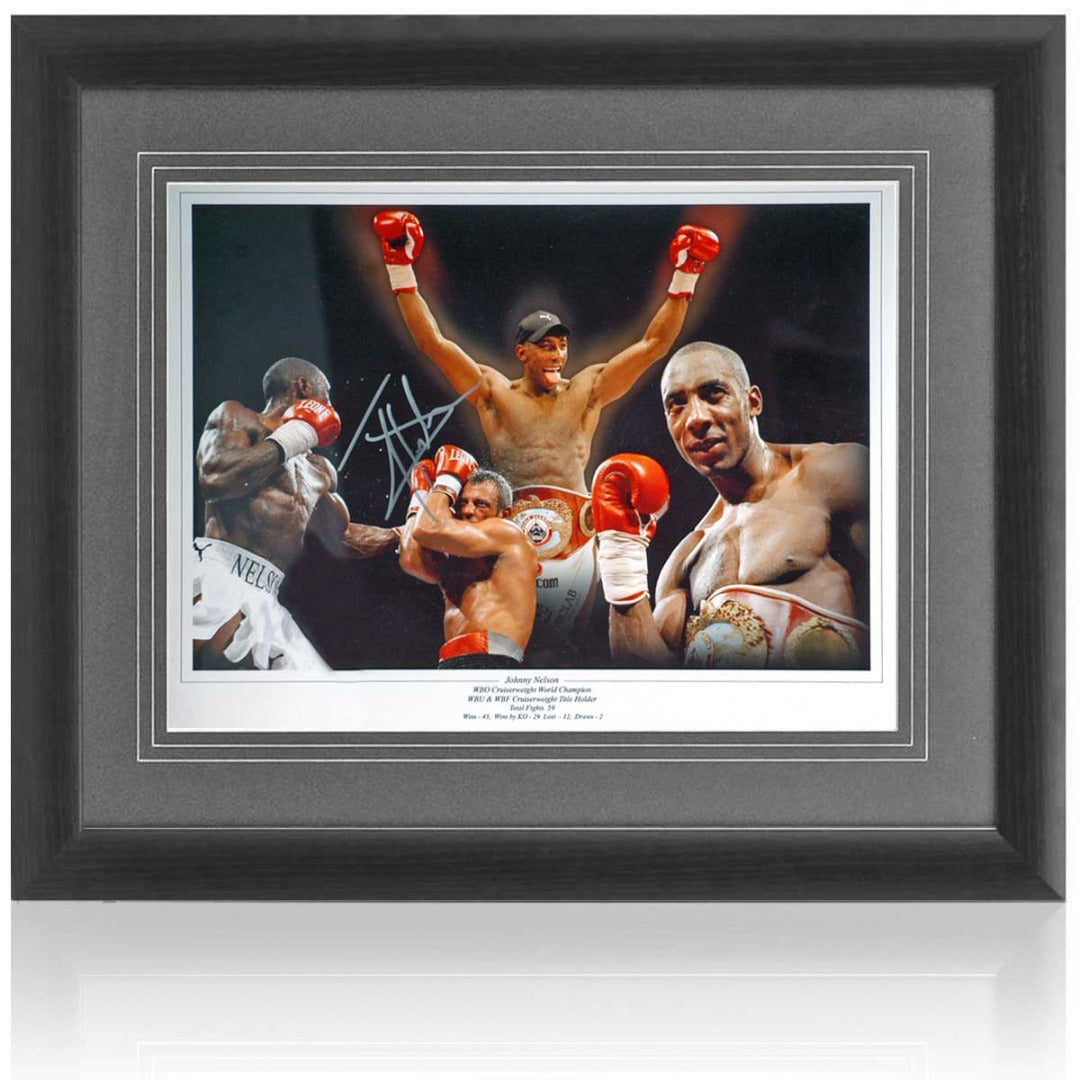 Fantastic 16x12" montage hand signed by the British boxing legend, Johnny Nelson.