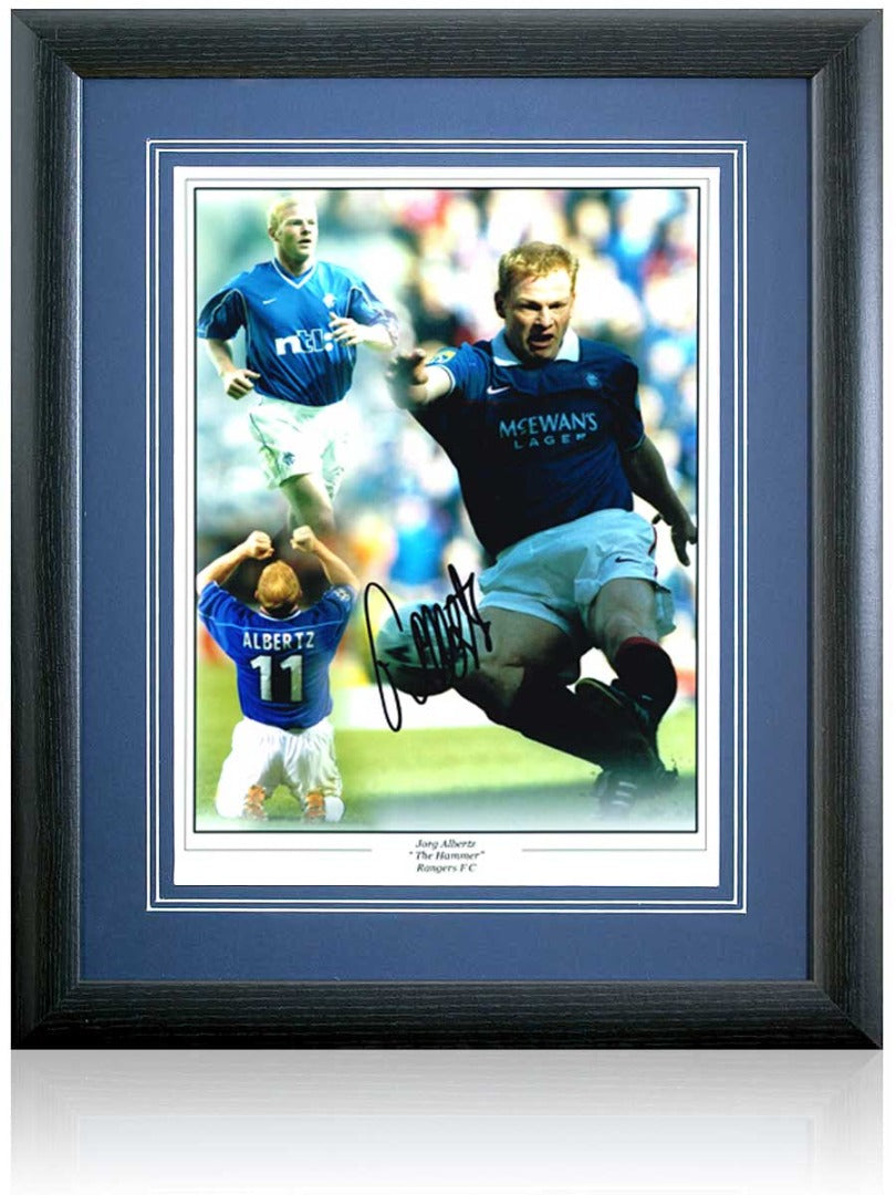 Stunning 16x12 inch photomontage hand signed by Rangers legend, The Hammer, Jorg Albertz.