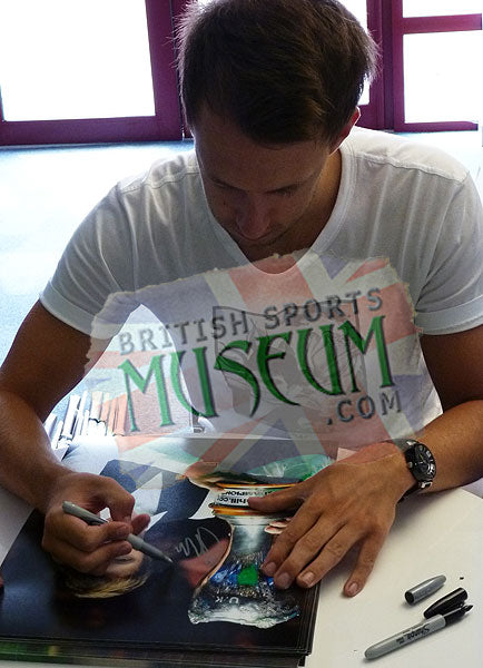This amazing piece comes mounted in grey art board in a black wood frame measuring 23x19". This fantastic piece of sporting memorabilia comes with a photo proof Certificate Of Authenticity issued by AFTAL members The BritishSportsMuseum.com