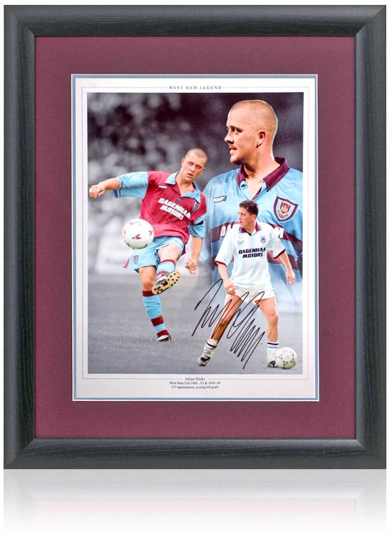 Fantastic 16x12" montage hand signed by West Ham United legend, Julian Dicks.