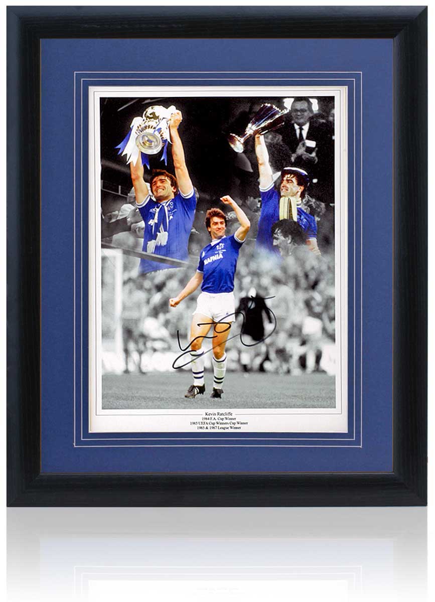 A superb piece of football memorabilia featuring the autograph of Everton legend Kevin Ratcliffe, hand-signed on a 16x12" photomontage celebrating his iconic career at Goodison Park.