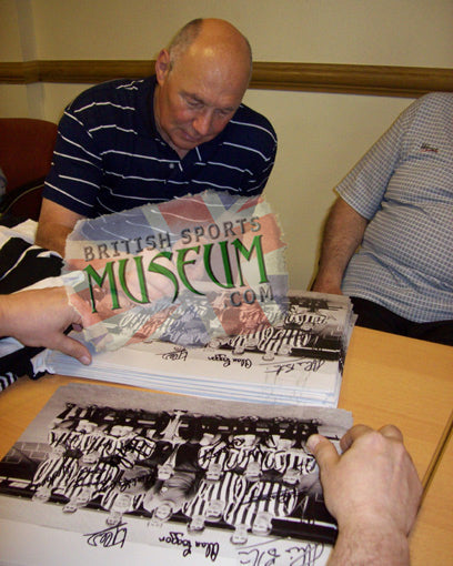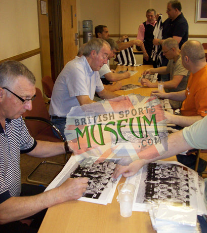 Hand Signed By Willie McFaul, David Craig, Frank Clark, Tommy Gibb, Ollie Burton, Bobby Moncur, Bryan "Pop" Robson, Wyn Davies, Preben "Benny" Arentoft, Jackie Sinclair, Jim Scott, Alan Foggan, John McNamee, Arthur Horsfield, & Jim Iley.