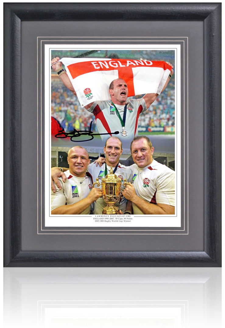 Celebrate England’s greatest rugby triumph with this fantastic hand-signed photographic montage of Lawrence Dallaglio, captured during the historic 2003 Rugby World Cup Final victory over Australia. A superb collectible for rugby fans and sports memorabilia enthusiasts alike.