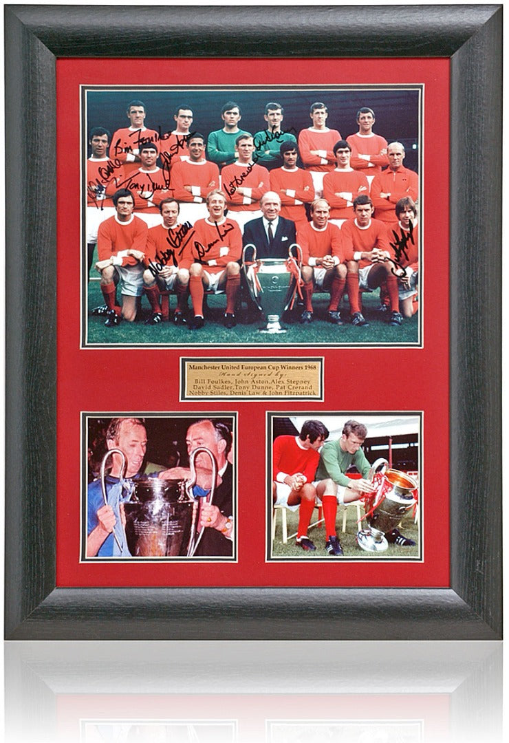 Manchester United 1968 European Cup Winners Signed by 9 Presentation 15x19" Framed