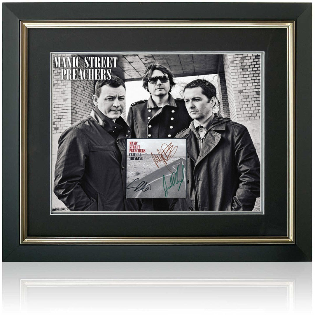 A stunning presentation of Manic Street Preachers' latest album 'Critical Thinking' hand signed by James Dean Bradfield, Sean Moore, and Nicky Wire.