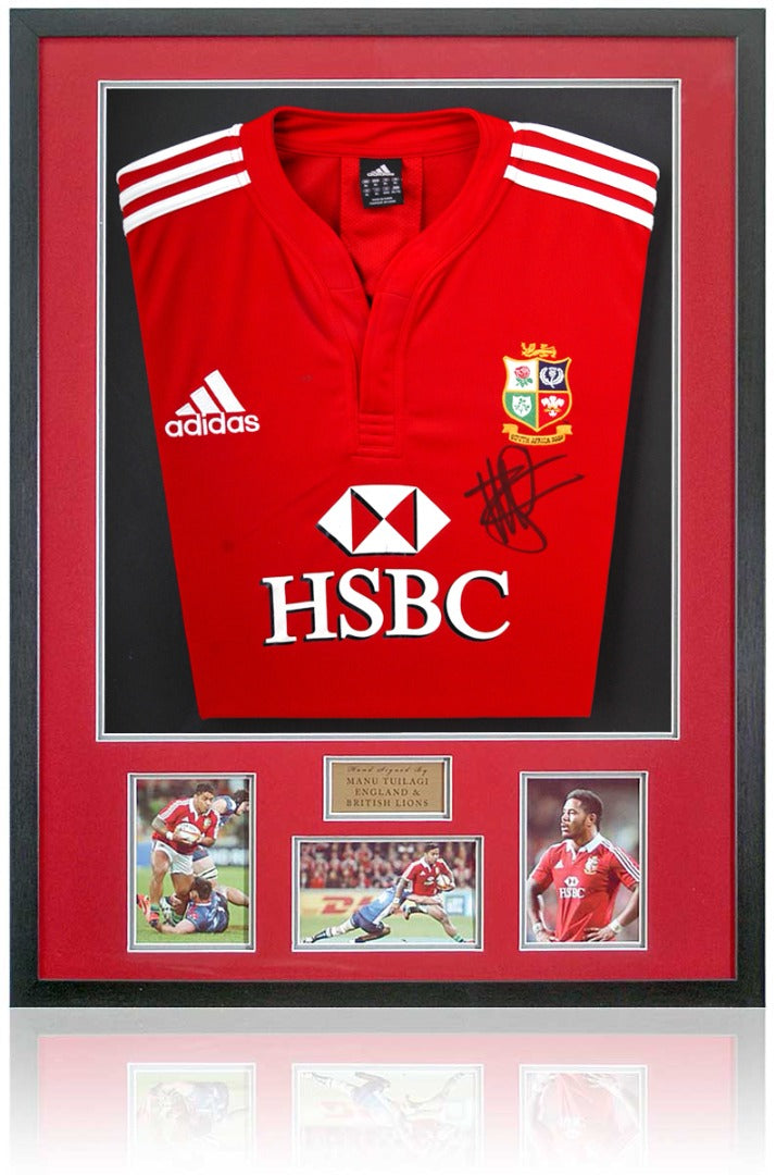 This fantastic piece of sporting memorabilia features a British and Irish Lions rugby shirt, hand signed by Manu Tuilagi.