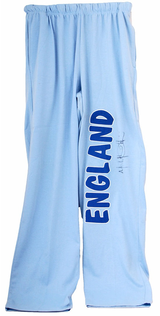 A superb piece of sporting memorabilia, these England cricket trousers were match-worn by Mark Ilott and have been hand-signed by the former Essex & England Cricketer on the left leg. This item of clothing is from the 95/96 Tour of South Africa and was worn in the warm-up game at Pochefstroom. This item comes with a letter confirming the history and authenticity of the item.