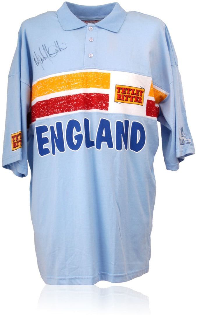 A superb piece of sporting memorabilia, this England cricket polo shirt was match-worn by Mark Ilott and has been hand-signed by the former Essex & England Cricketer on both sides. This shirt is from the 95/96 Tour of South Africa.